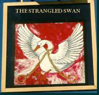 THE STRANGLED SWAN is in Major Winkle, a recent housing development in Overcamp. Guest lagers at weekend. Wipeable plastic seats. Juke box. Modern, self-flushing toilets. Children's play area near swamp. No horses.