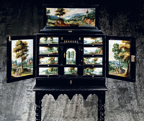The Upper Landing On the north wall hang portraits of former Deans, including pictures of all the Deanery cats since “Ginger”, the occupant of the Deanery in 1822. At the east end stands a half life-size plaster statuette of Bishop Carpet who held the See of Wenchoster from 1819–1833. This was the model for the large statue in Portland stone in Wenchoster’s Market Square known locally as “Mat”. On the south wall hang six pencil and charcoal drawings made by Dean Rush during his occupancy between the years (1947–1955). Two show his driver, Peter Clutch, and bear the date of 1951, the year before his death in an accident with a coal-delivery van at the Broad Gusset crossroads. At the west end stands a “Cabinet of Curiosities”, the contents of which have yet to be catalogued. |