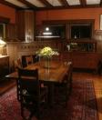 The Dining Room Dean Riptiding died in this room on the 21st September, 1832. The table on which he was laid out was made for Dean Hangem out of old oak trees from the cathedral Close that were blown down in the Great Storm of 1800. It is a long-standing tradition that at the end of every formal meal taken at this table the final toast is always proposed by the Dean with the words "To the gale and riptide. May they never grow less." |